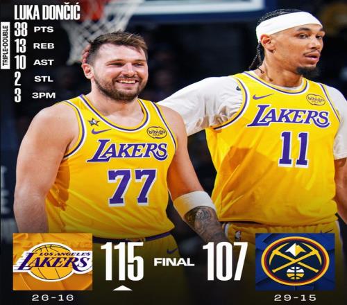 湖人收汁逆转掘金东契奇38+13+10老詹准三双穆雷下半场2分